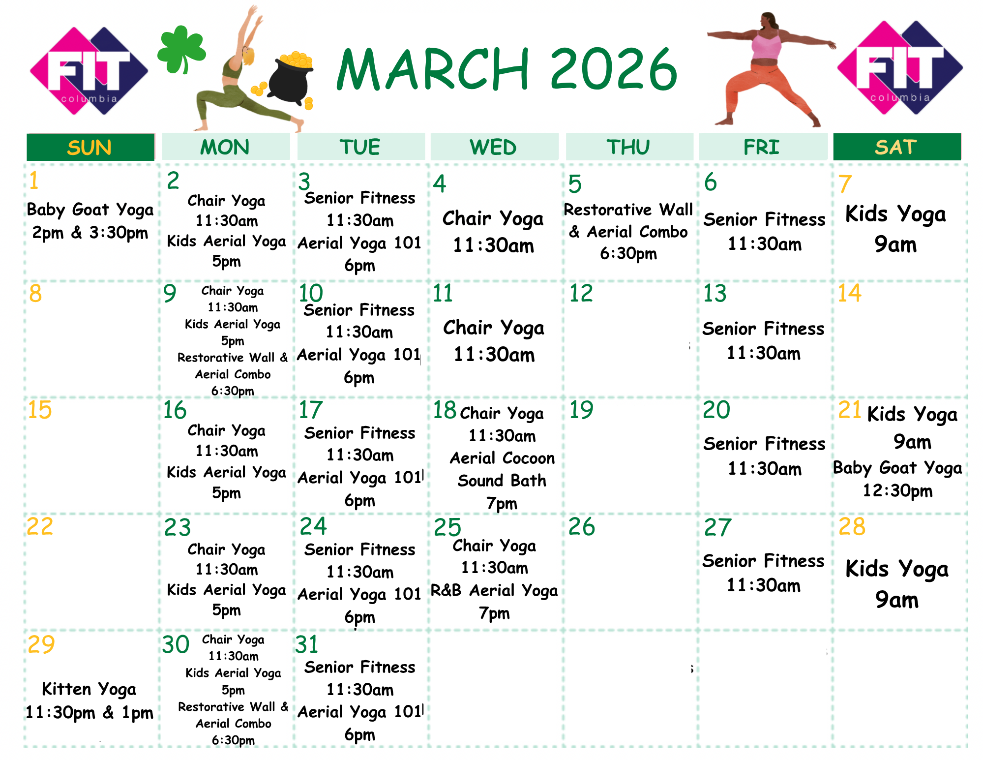 Fit Columbia is an award winning studio offering a balanced approach to sustainable fitness & life enhancement through strength & mobility training, childlike play, and yoga. Fit Columbia is also a teaching studio hosting hundreds of interns and apprentices interested in a future in the fitness industry.